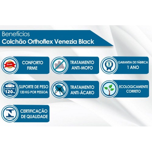 Etiquetas: Colchao, Mola, Bonnel, Venezia, Black, Orthoflex, 138X188X24, Casal