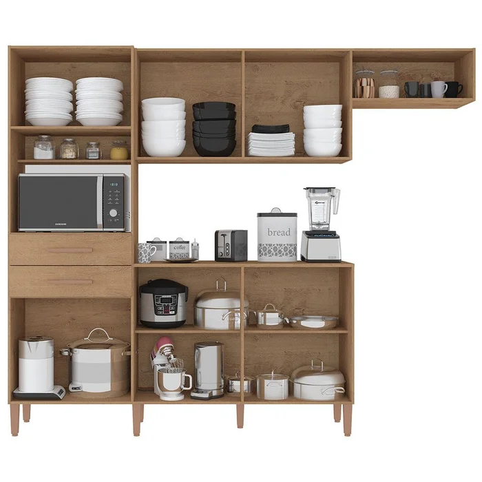 Um ponto importante sobre essa cozinha são as 6 portas e 2 gavetas, ideais para você arrumar seus utensílios com ainda mais facilidade, visando trazer praticidade para sua rotina.