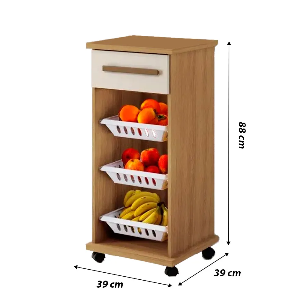 Armario cozinha fruteira 39 cm com 3 cestos 1 gaveta Curitiba Arte moveis Cinamomo/Off White