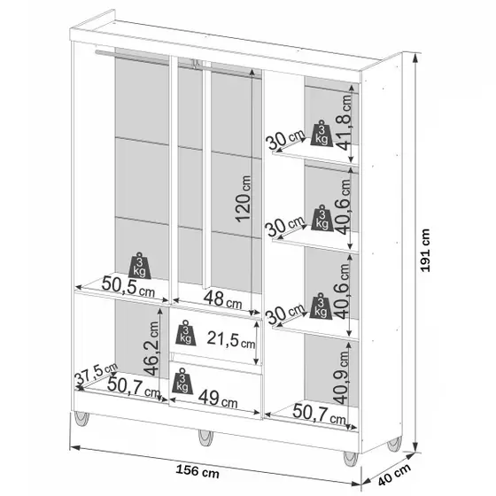 - Modelo: Roupeiro Lisboa 4 Portas - Fabricante: Imop Móveis - Produzido em MDP (maior resistência) - Acabamento em impressão ultra violeta e verniz fosco - Possui 04 portas e 02 gavetas - Corrediças metálicas - Espaço para roupas longas - 02 Prateleiras - 01 Cabideiro em madeira revestida em PVC - Pés inclusos em PVC de série - Puxadores em plástico ABS - Peso Máximo por Prateleira 15kg - Peso Máximo por Gaveta 5kg - Guarda-Roupa Suporta Até 60kg - Garantia do Fabricante: 03 Meses - Complexidade da Montagem - Alta: deve ser montado por um montador especializado